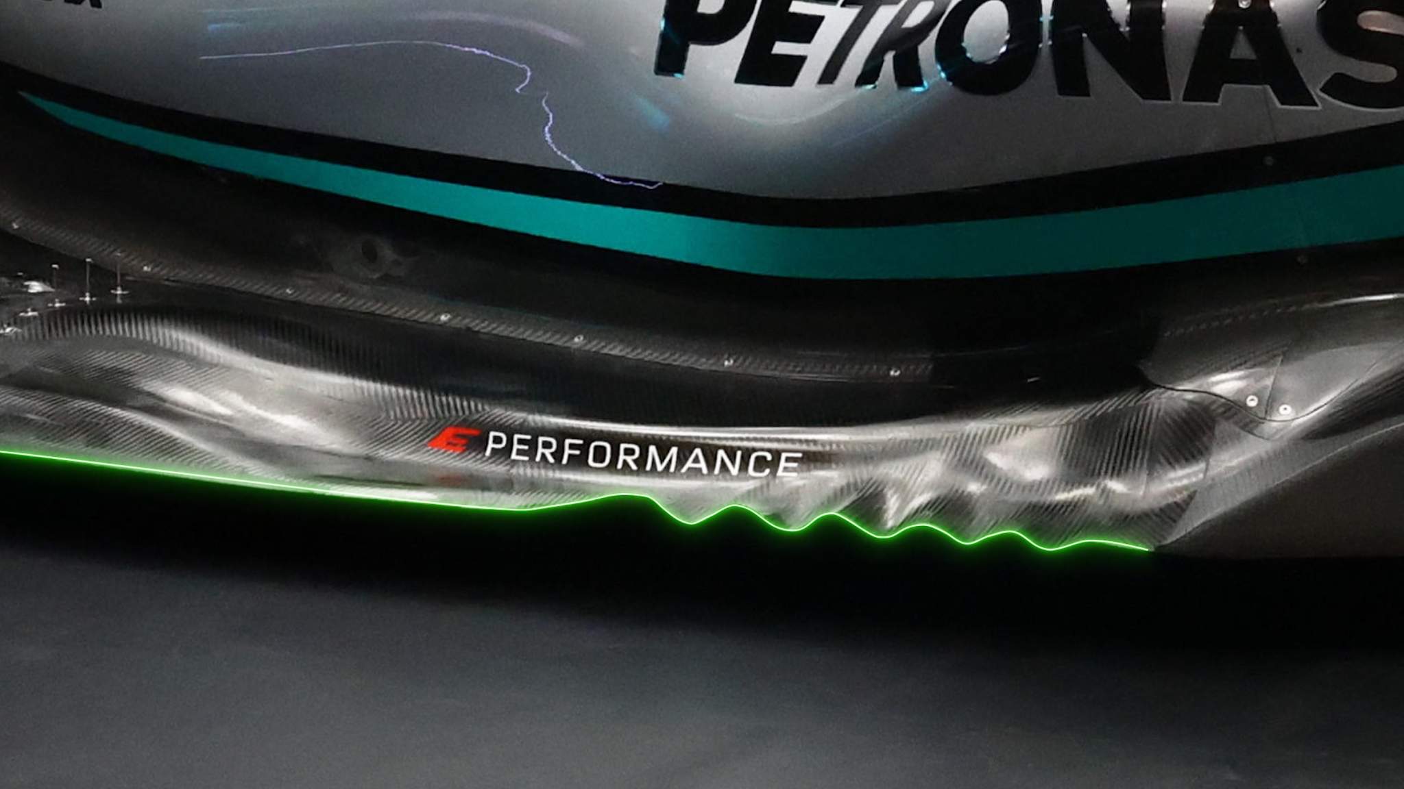 这些是新规下优化地面效应的第一部分。前缘比其他赛车略大,气流到达此处的攻角将不再至关重要,这一设计可以使底板性能更强。