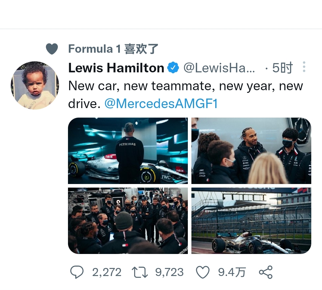 汉密尔顿更新了他的twitter:新车,新同事,新时代,新目标。