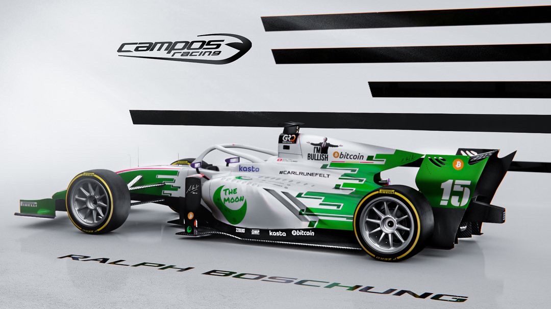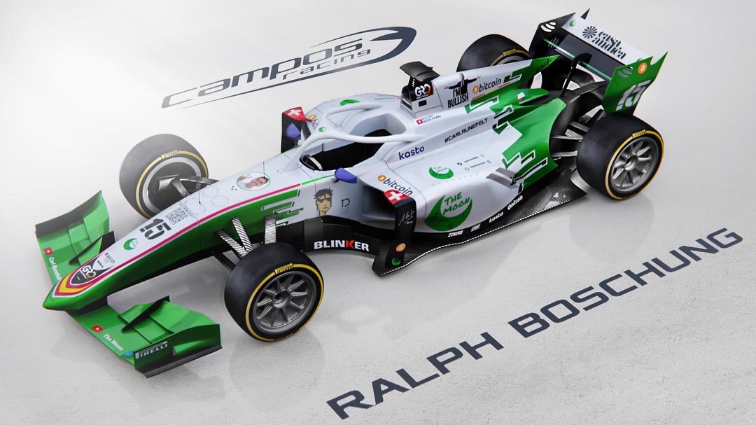 Runefelt是一位虚拟货币的专家,在社交媒体上自称为“The Moon”,在YouTube上有超过50万的粉丝。本赛季,他作为博尚的赞助,进驻Campos车队,自然要在车辆涂装上作出调整,来体现自己的品牌。