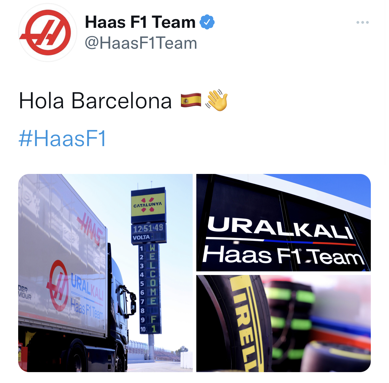 哈斯车队在社交媒体上称,他们已经抵达巴塞罗那的加泰罗尼亚赛道,正在为即将到来的冬测做准备。