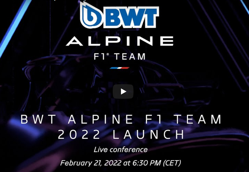 Alpine新车发布会将于北京时间2月22日凌晨1:30开始在YouTube直播。