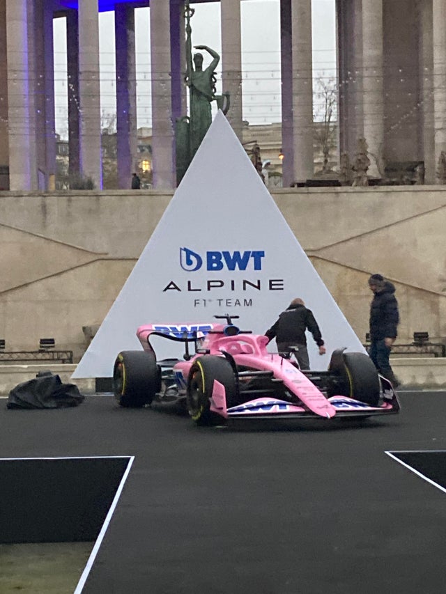 在发布会现场的观众发布了Alpine车队2022赛季新车的疑似图片,车身的涂装基本都是冠名赞助商BWT的代表色粉色。