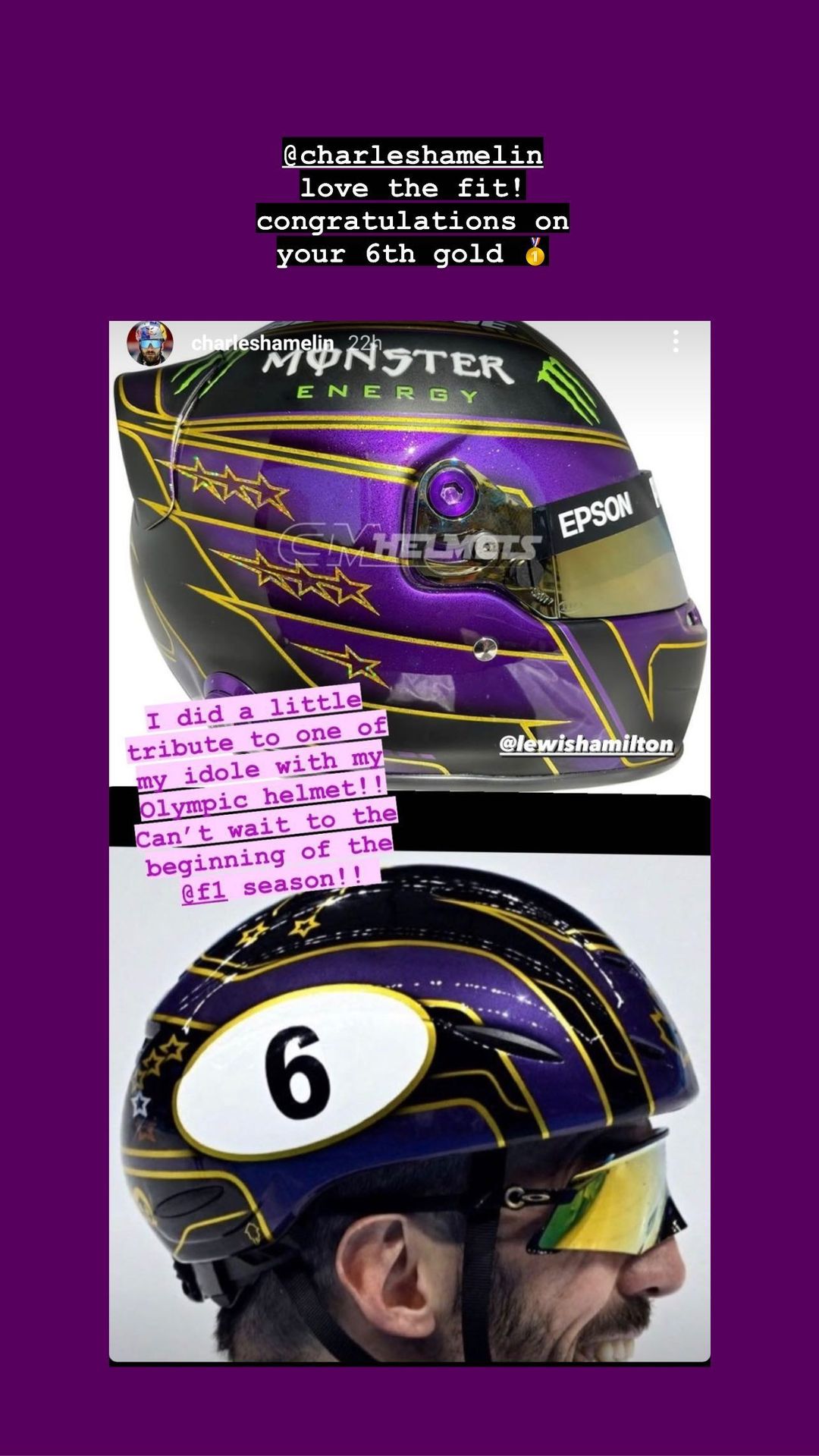 2022北京冬奥会加拿大速度滑冰传奇查尔斯·哈梅林在设计自己的头盔时向偶像汉密尔顿致敬。