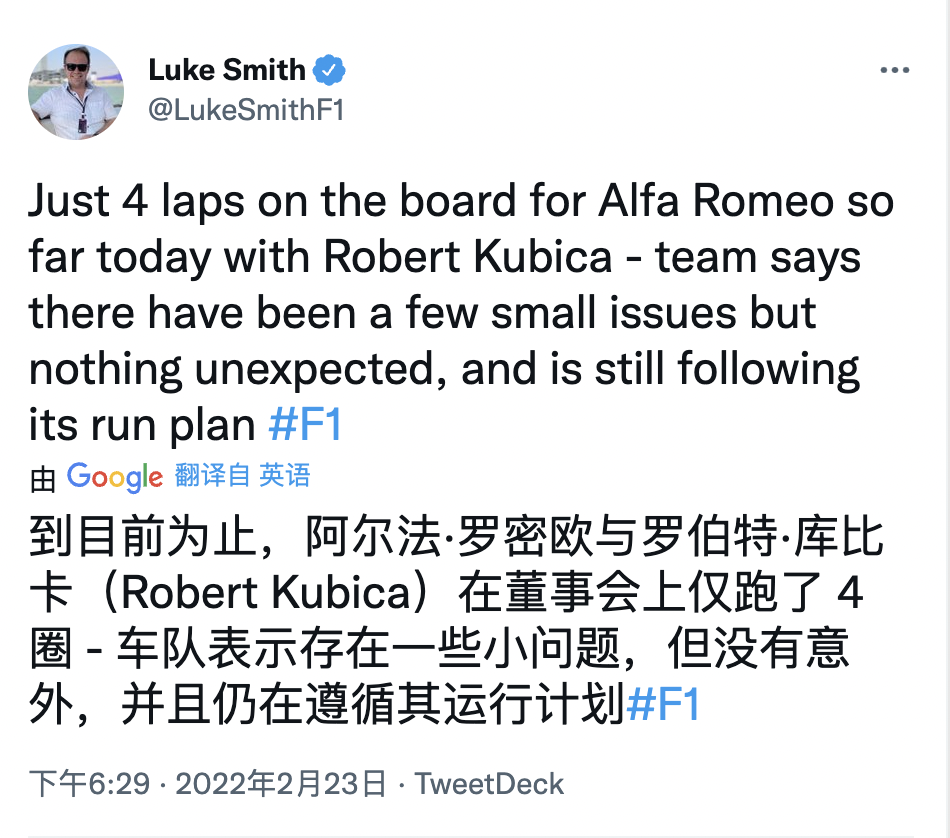 根据Autosport记者Luke Smith报道,阿尔法罗密欧目前只进行了四圈测试,是因为遇到了一些“小问题”。