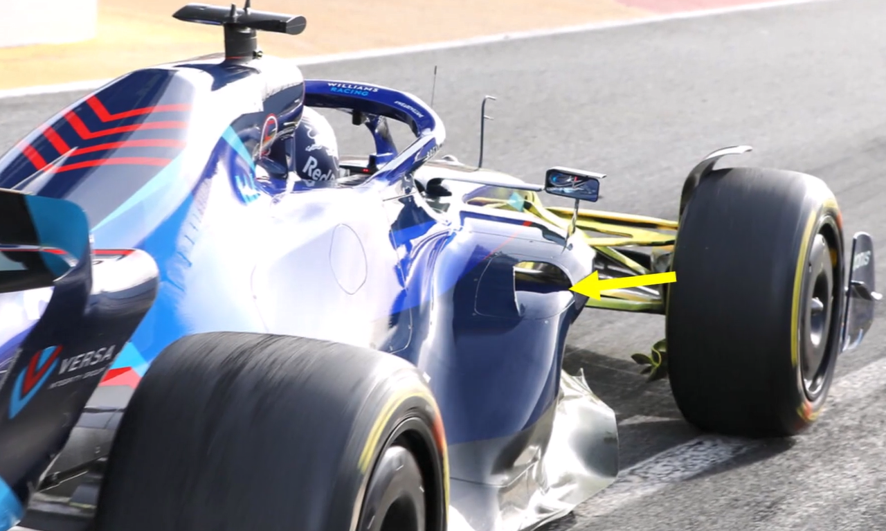 威廉姆斯侧箱竟然还有一个通风口,穿过侧箱再外洗乱流。