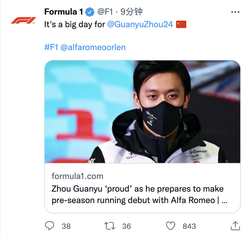 F1官方发布了昨日发布会上周冠宇的采访,并说“