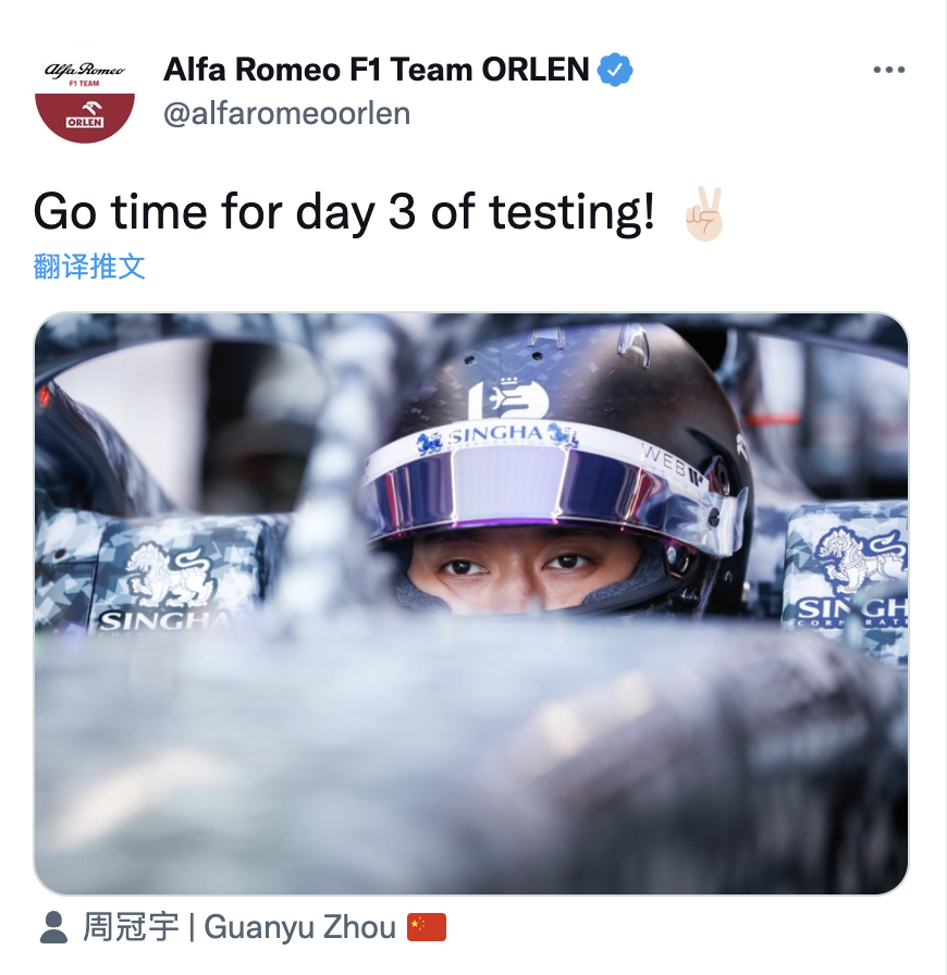 阿尔法罗密欧发布周冠宇图片:第三天测试开始!