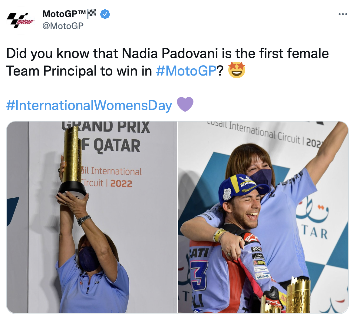 MotoGP首位获胜的女性领队,就在今年揭幕战诞生