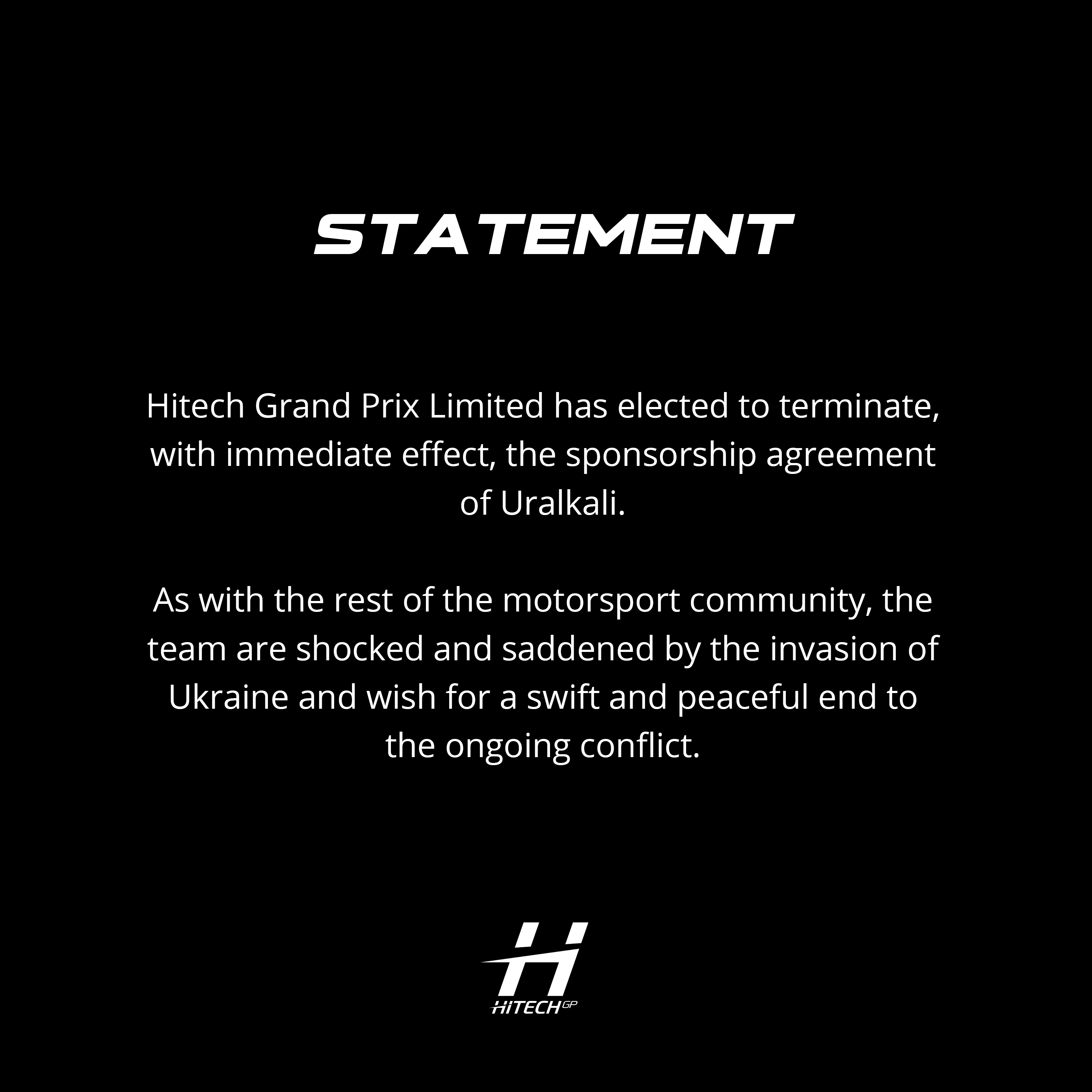 Hitech车队宣布终止与乌拉尔卡利的赞助协议。
