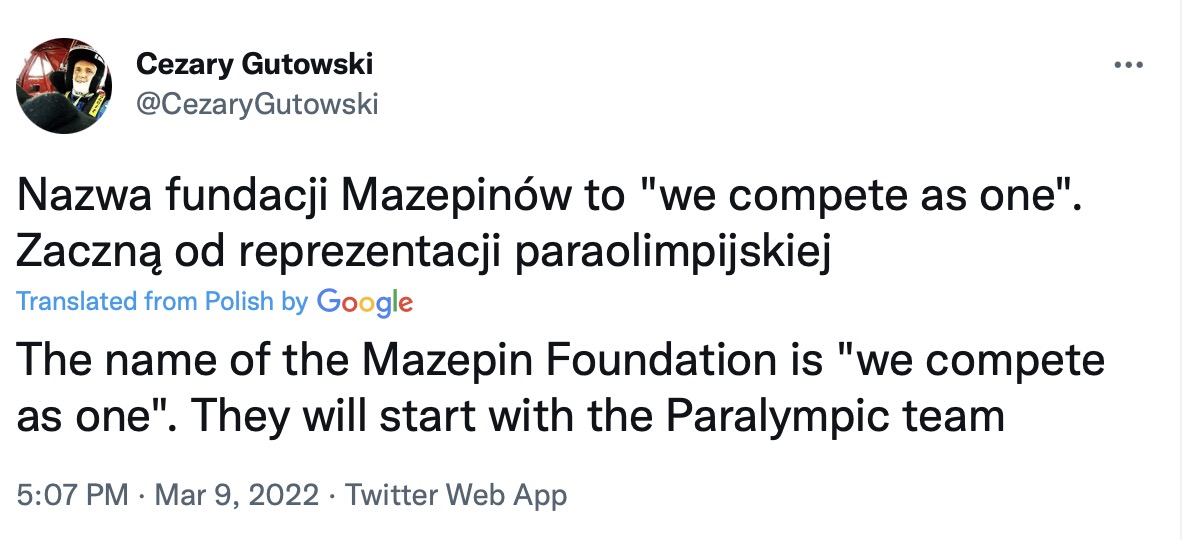 马泽平成立了名为“We Compete As One(共同竞赛)”的基金会,为因政治原因而失去职业生涯机会的运动员提供财务、法律和心理援助。