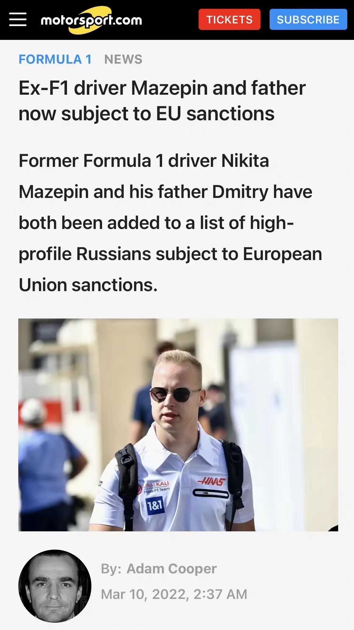 欧盟理事会周三公布了最新的补充内容,马泽平父子被列入制裁名单。这个消息是在马泽平告诉媒体他和他的父亲都没有受到制裁后不久发布的。但这并不能作为哈斯解除合同的理由。