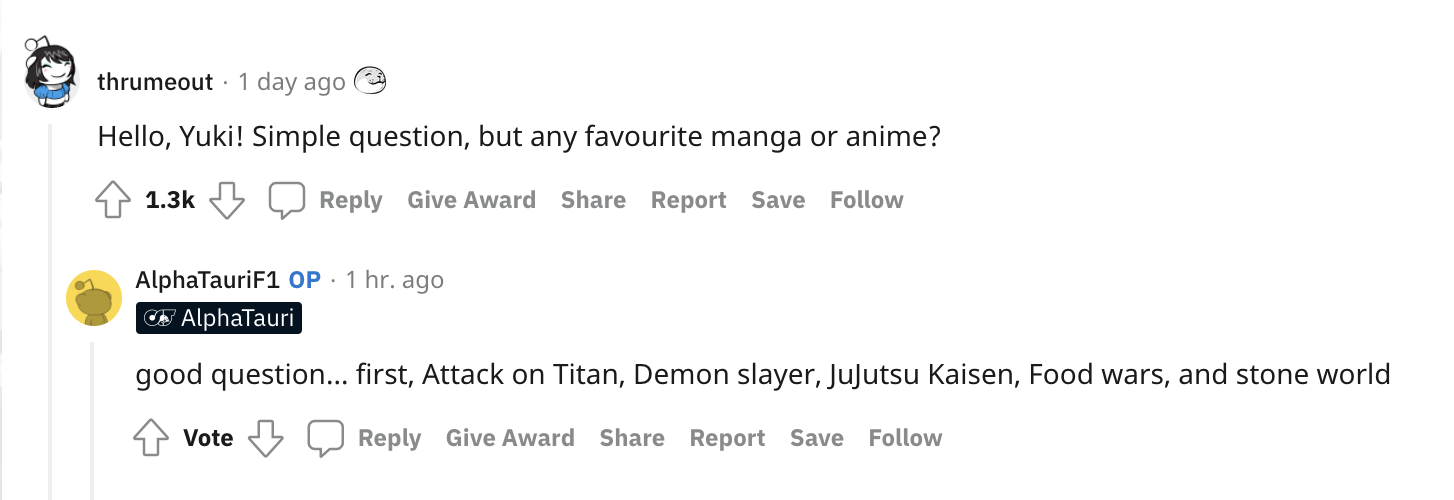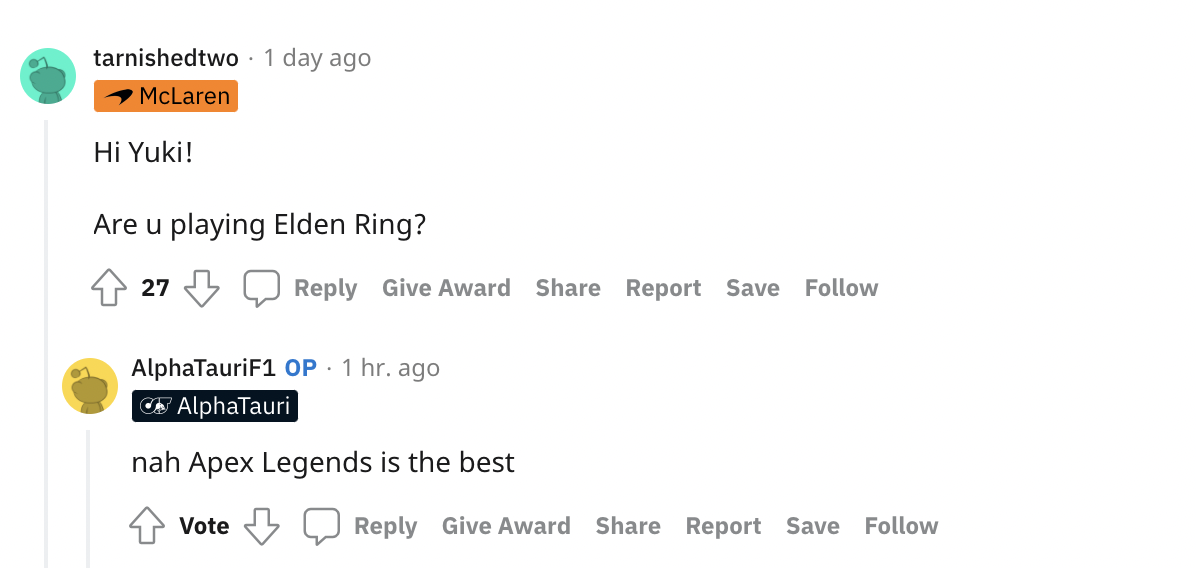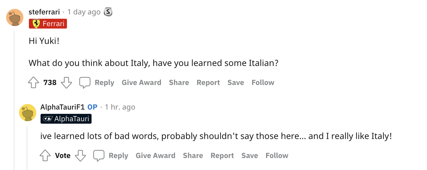 角田裕毅在巴林测试的第一天还在Reddit上回答网友问题。
