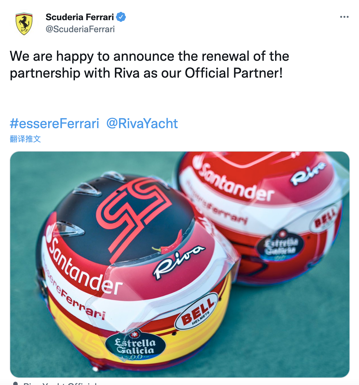 法拉利车队官宣,与游艇制造商Riva续约,继续合作关系。