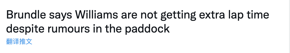 天空体育记者马丁·布伦戴尔表示,关于威廉姆斯会获得额外测试时间的消息是不属实的,威廉姆斯并不会有额外测试时间。