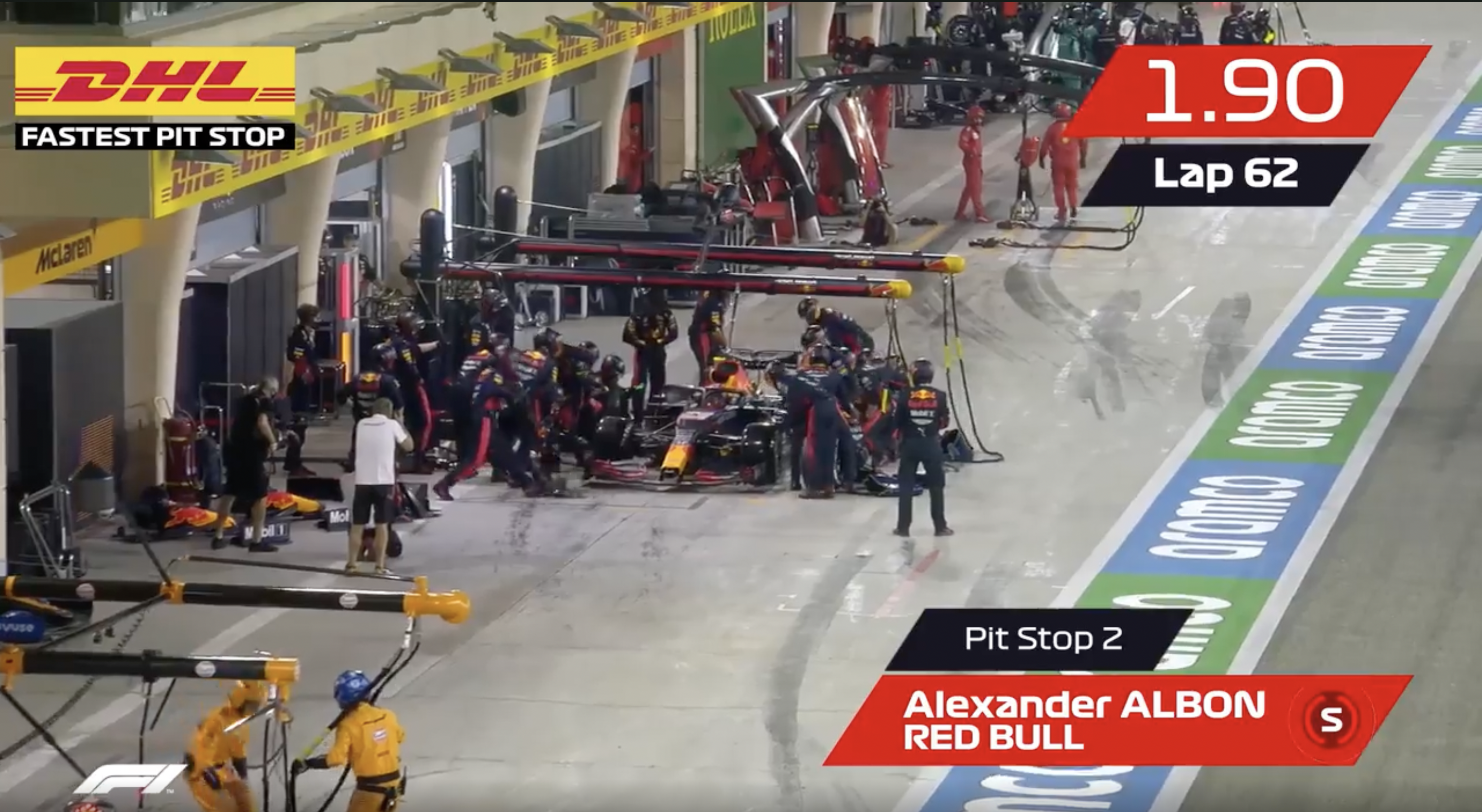 2020年,红牛车队赢得了15个DHL最快进站奖,只有2场比赛旁落。