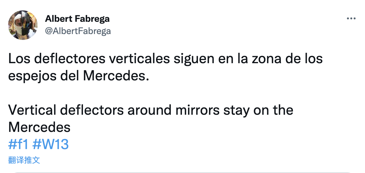 根据F1现场记者Albert Fabrega发布的图片显示,梅赛德斯的后视镜并没有改变,垂直导流板仍然在后视镜区域。