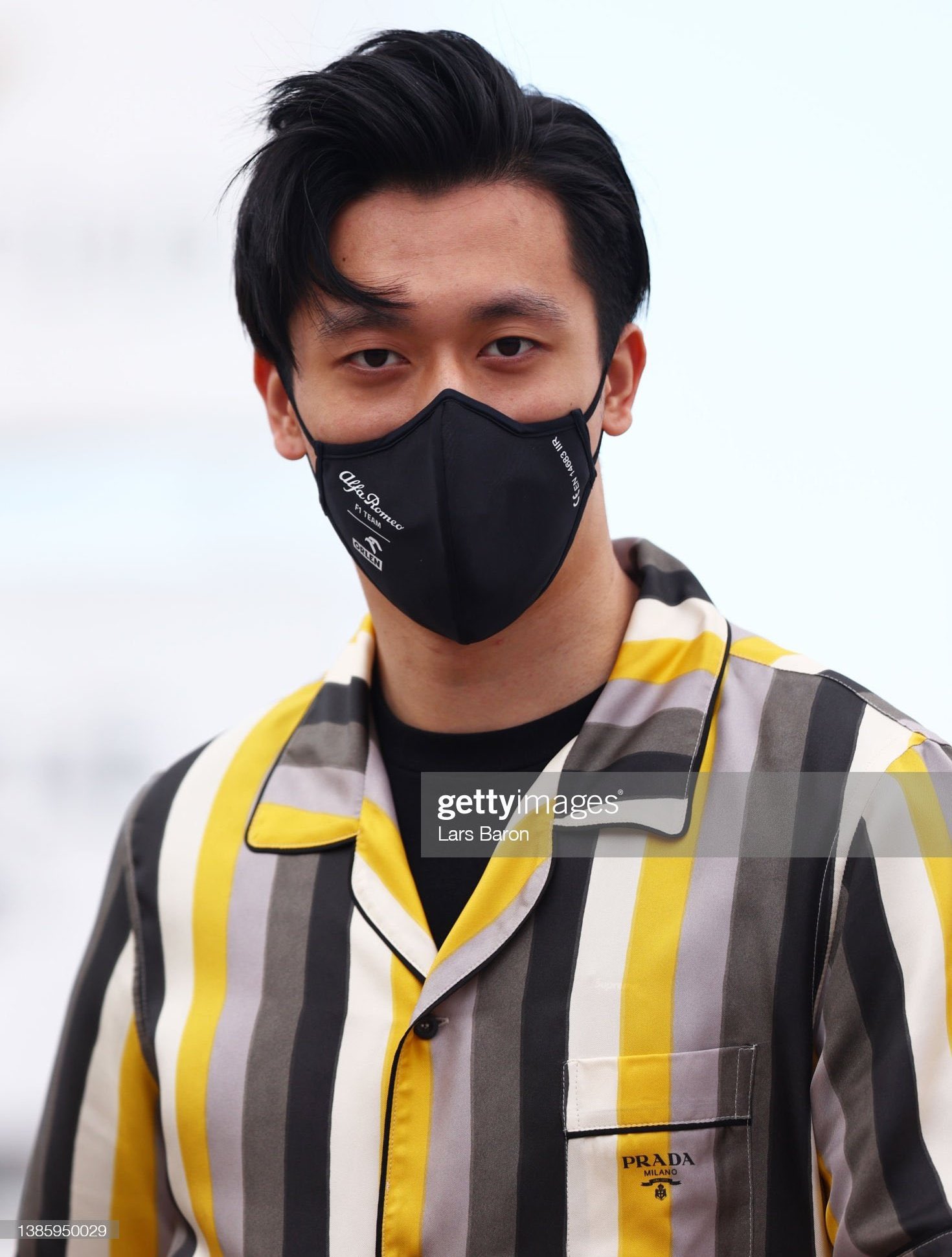 周冠宇现身围场,身穿黄色条纹衬衫