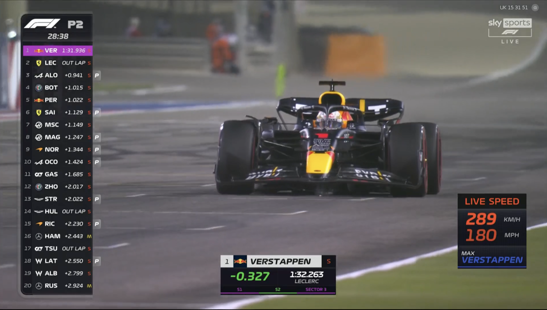 【巴林站二练】维斯塔潘做出1分31秒936,升至第一