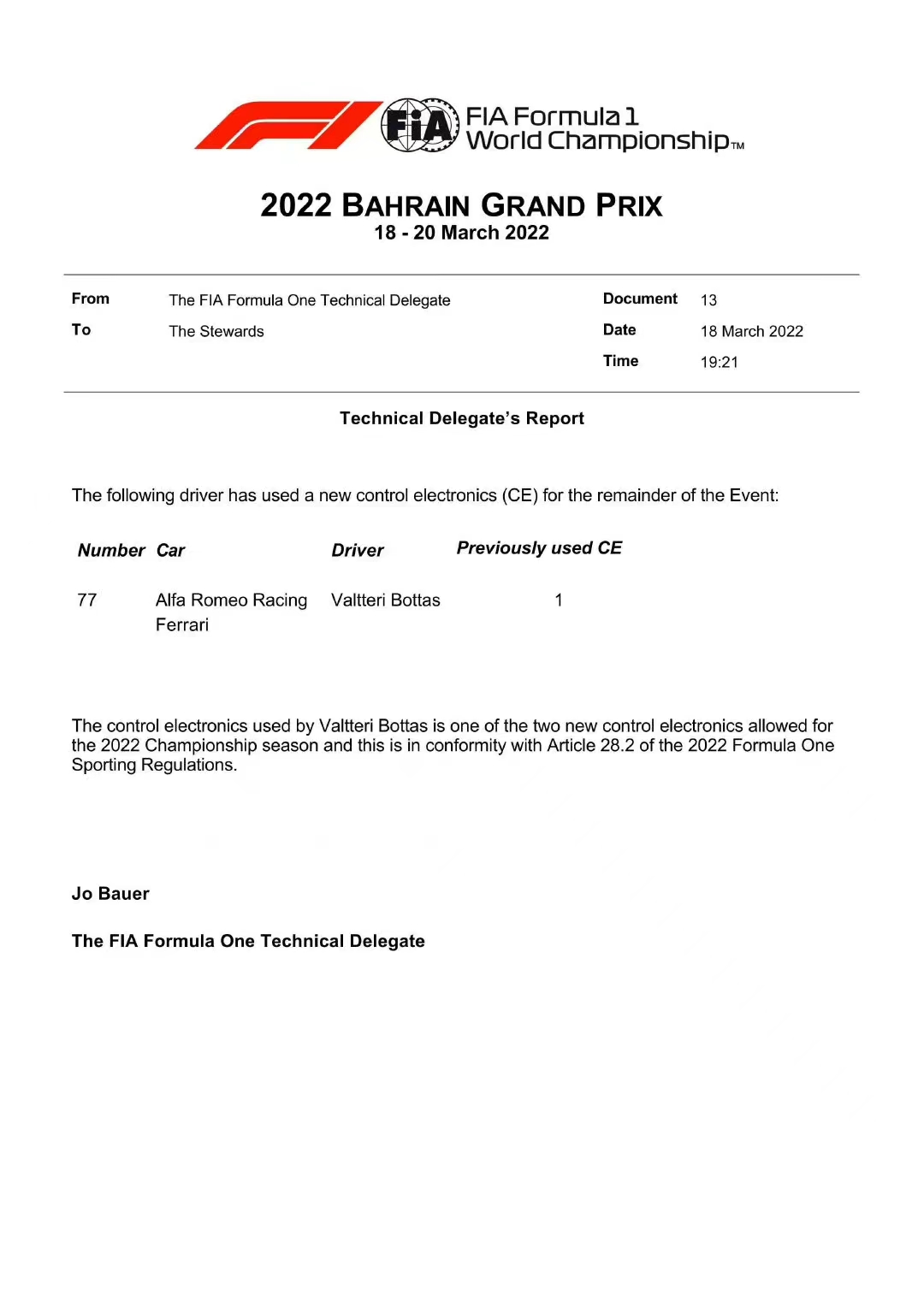 博塔斯遇引擎故障,更换新电控