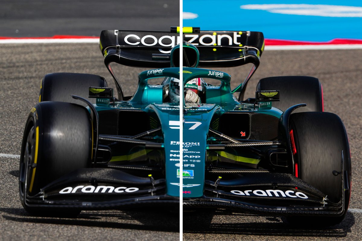 揭幕战上,阿斯顿马丁对其侧箱进行升级,尽管是个相对较小的改变,车队增加了进气口的下外角半径(如图中红色箭头所示)。