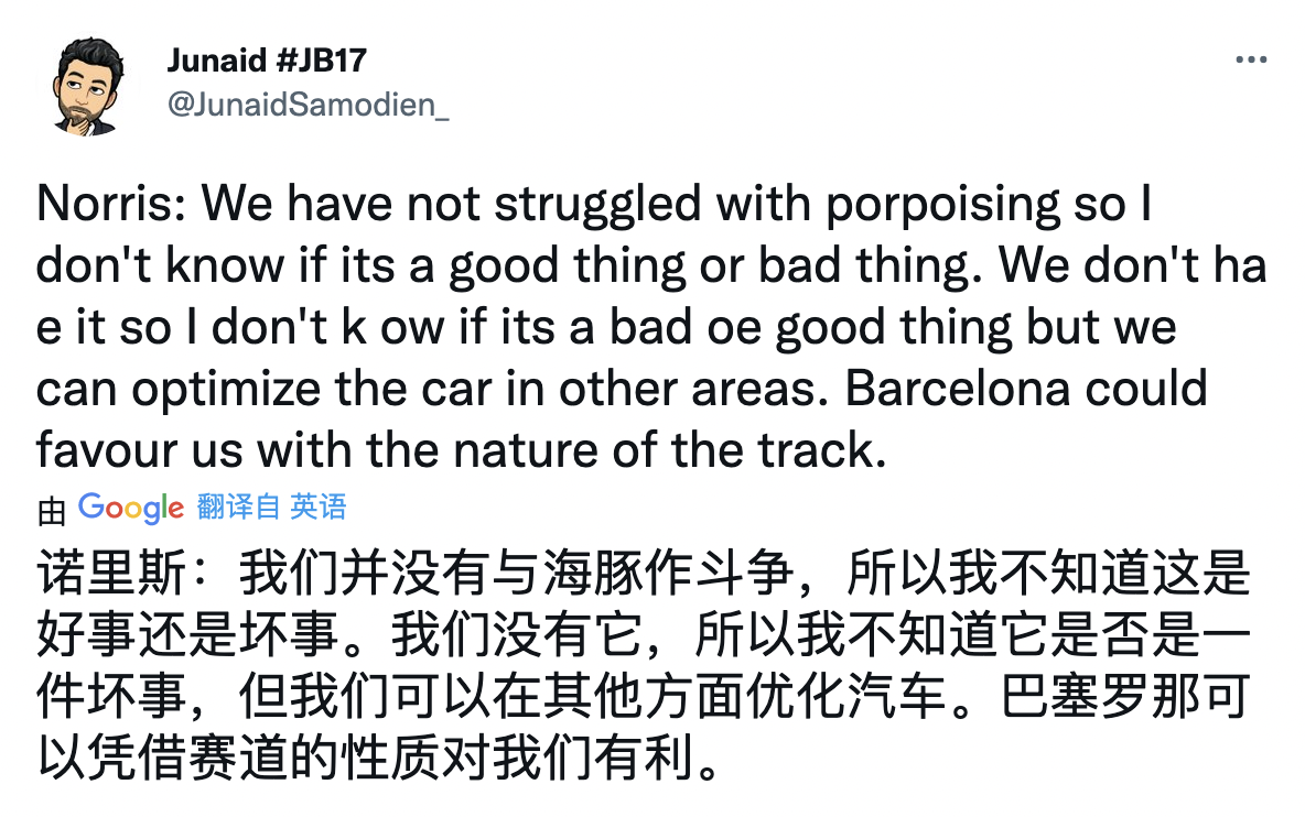诺里斯在周五的新闻发布会上说,因为迈凯伦车队没有遭遇“海豚跳”的困扰,所以他也不知道这是好事还是坏事。在巴塞罗那测试中的较好表现,可能是因为赛道更适合迈凯伦赛车。