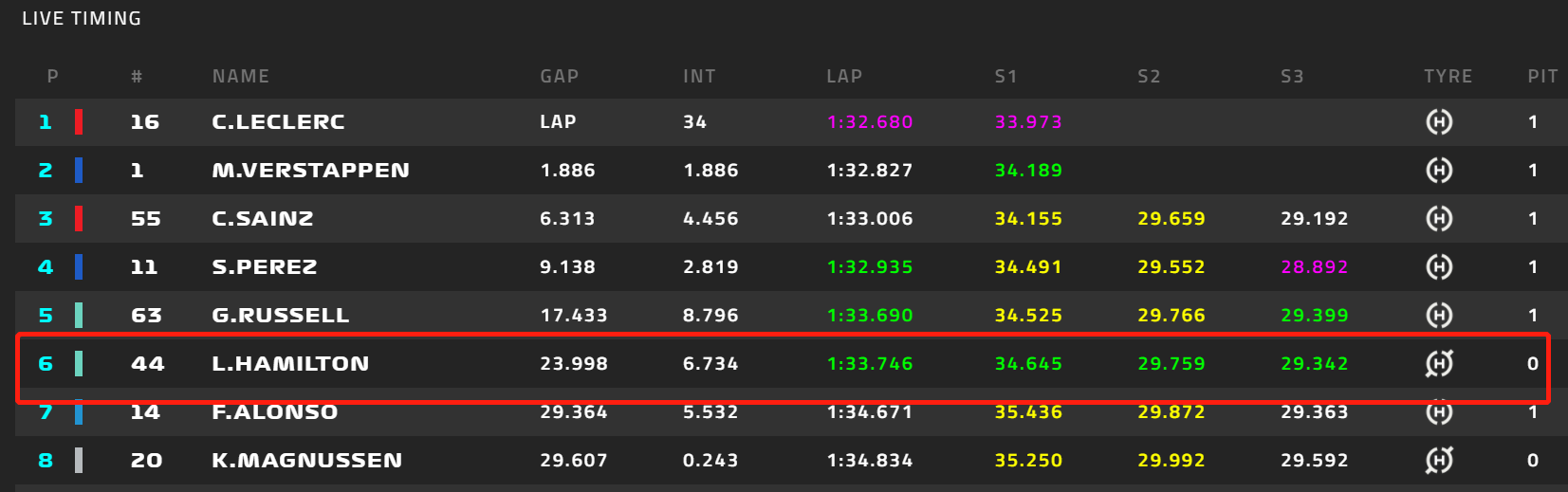 汉密尔顿目前暂居第6。马格努森也没有进展。