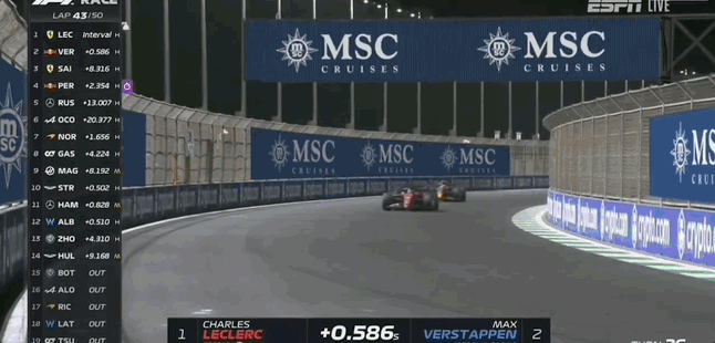 【沙特站正赛】为争DRS,维斯塔潘和勒克莱尔在监测点前刹车