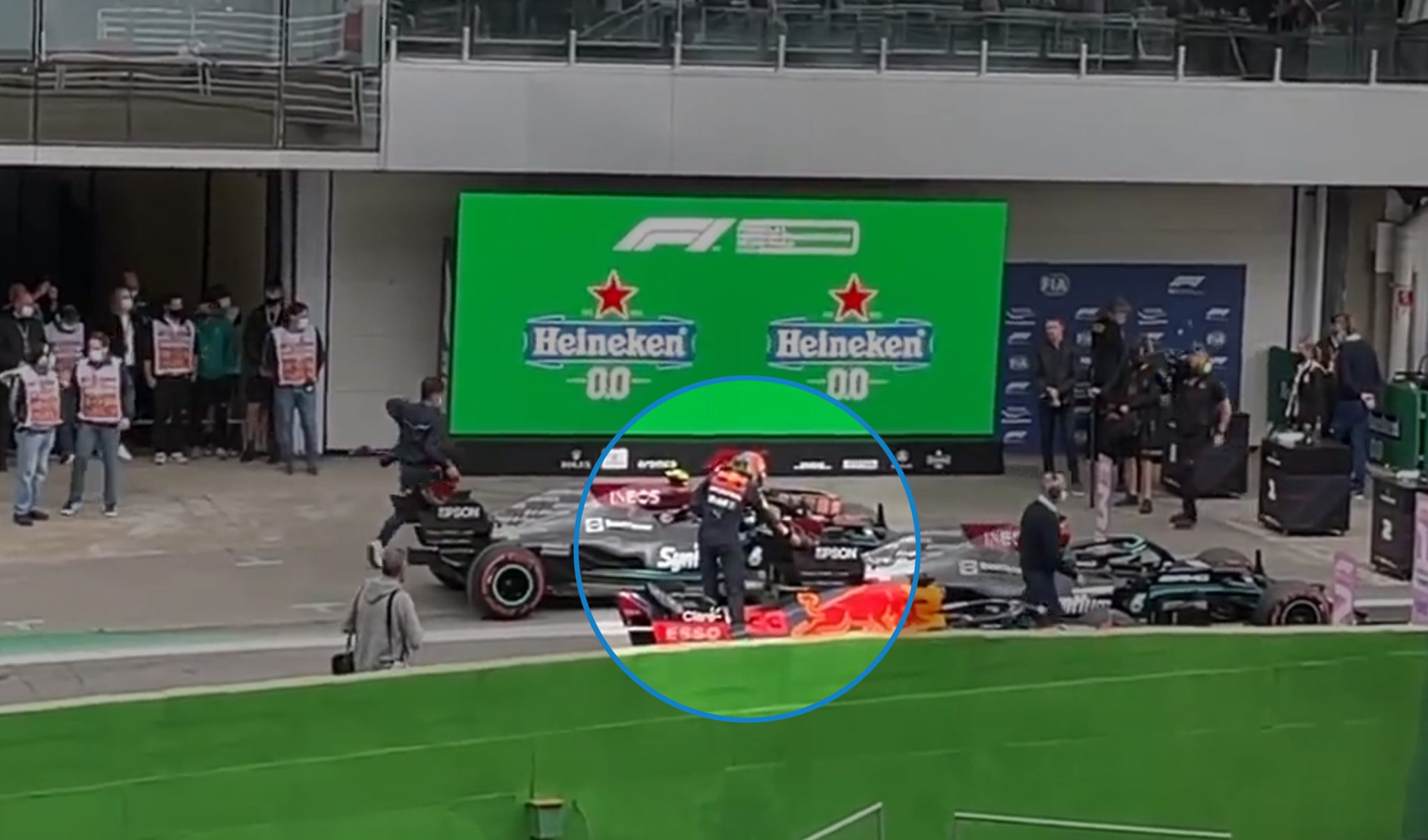 F1圣保罗站排位赛赛后,汉密尔顿因赛车尾翼违规接受调查,维斯塔潘也因为在车检区触碰了汉密尔顿的赛车受到传唤。巧合的是,红牛车手的“一碰”恰好“碰”在了梅赛德斯W12的尾翼上。