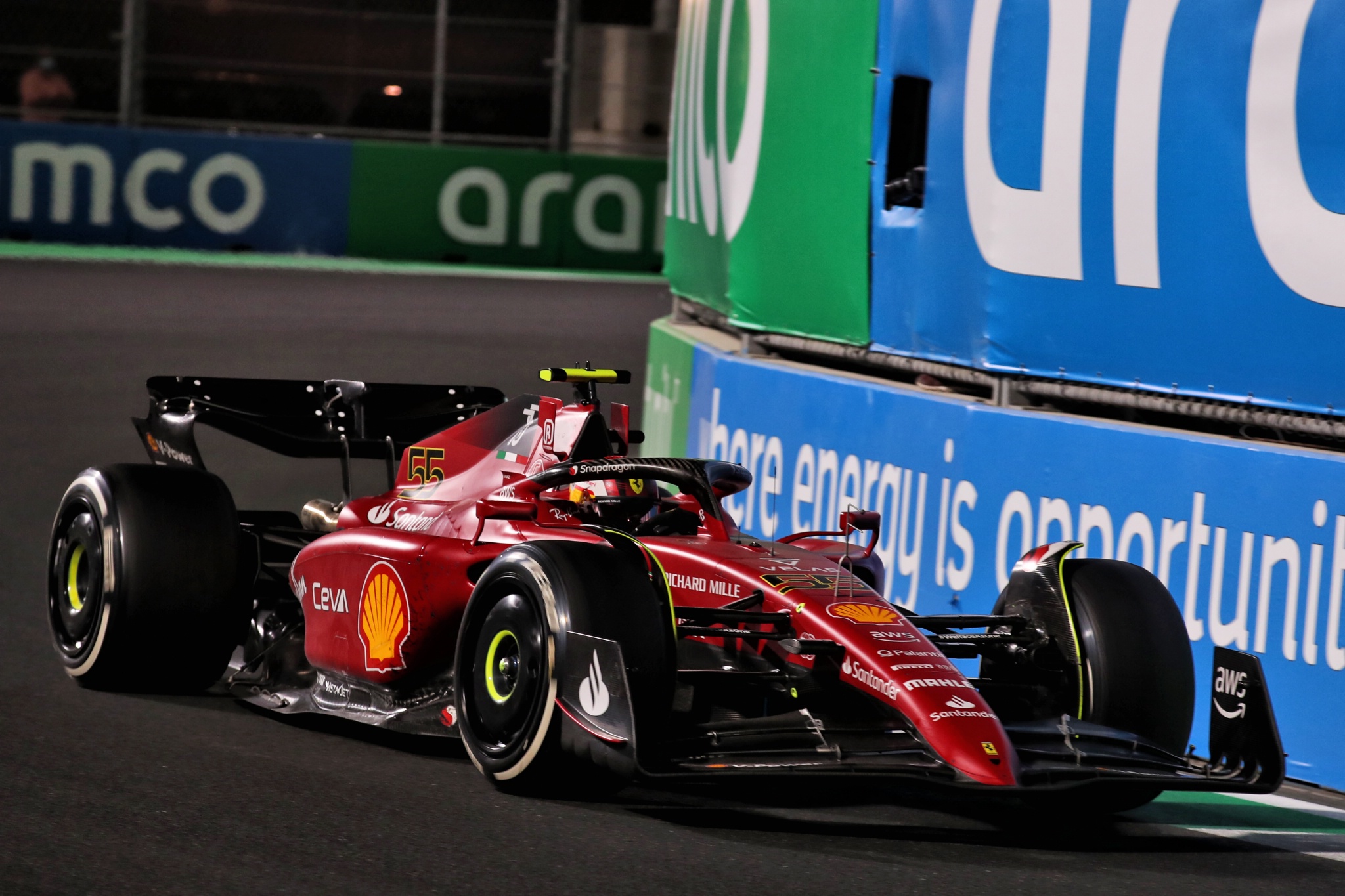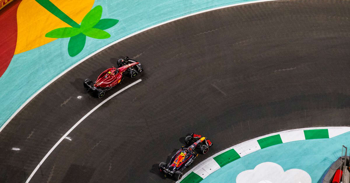 周日进行的沙特站正赛中,当塞恩斯从通过维修区出口并越过出口控制线时,他的身位领先于正处于发车直道上的佩雷兹。但由于佩雷兹车速较快,红牛还是在维修区出口处越过了法拉利并保持领先。