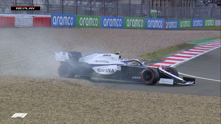 此时周冠宇已经发现不对了,他开始踩油门提高转速。