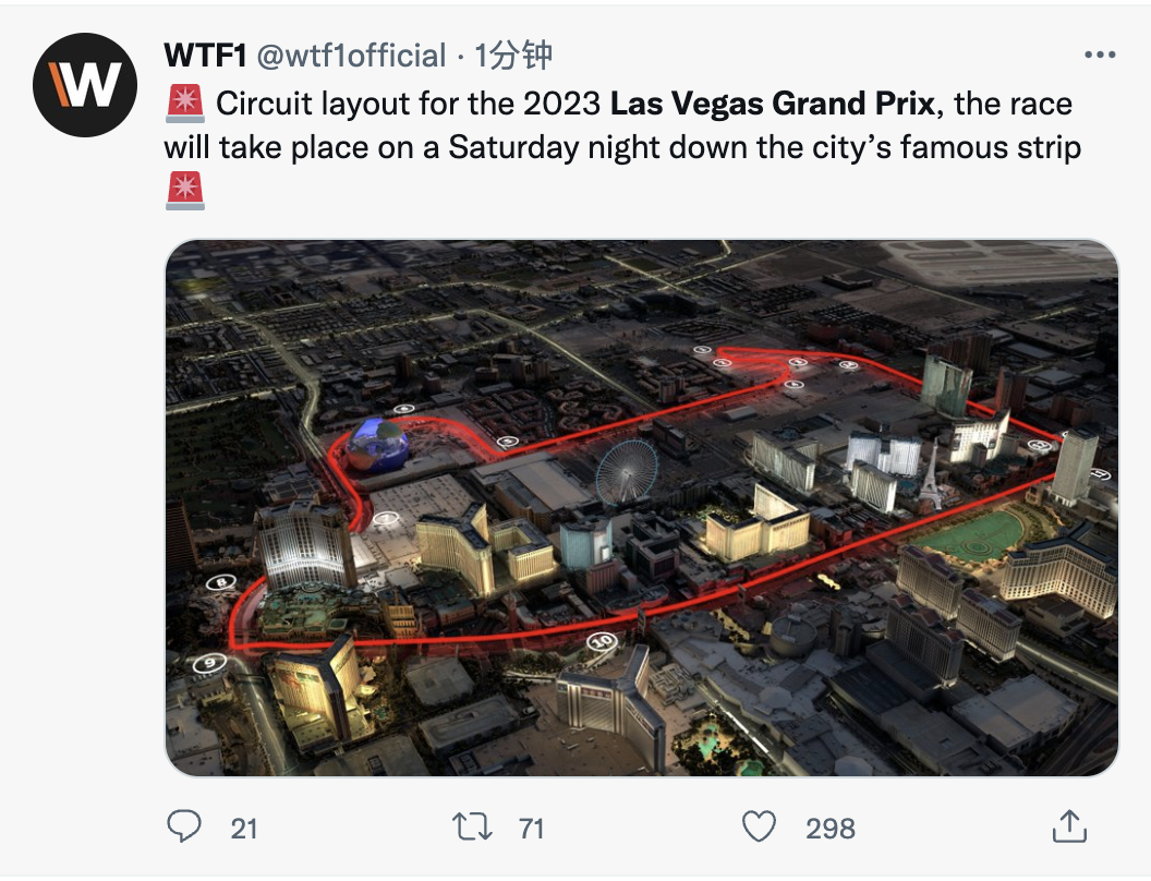 WTF1:拉斯维加斯赛道公布,将在周六晚比赛