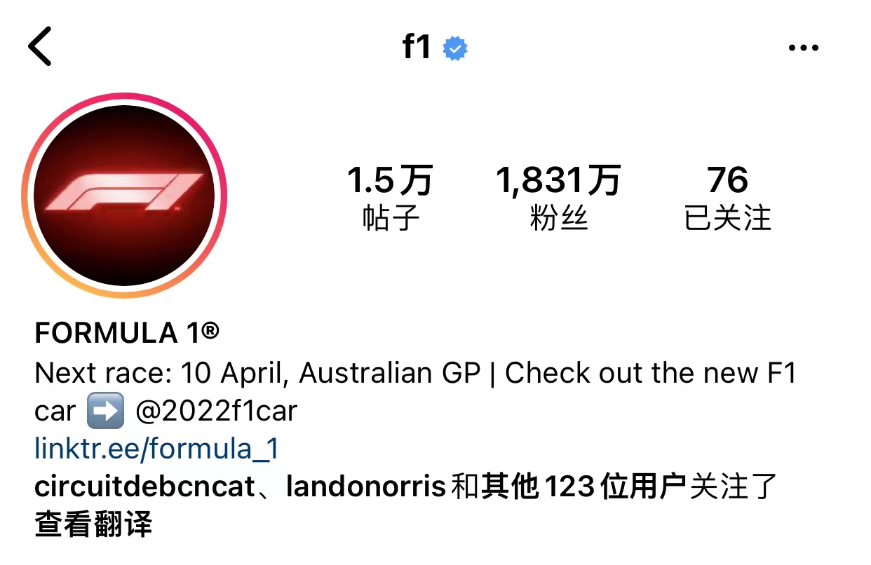 F1官方的Twitter和Ins都换了头像的颜色,变成了霓虹灯风格,以此庆祝拉斯维加斯的官宣。