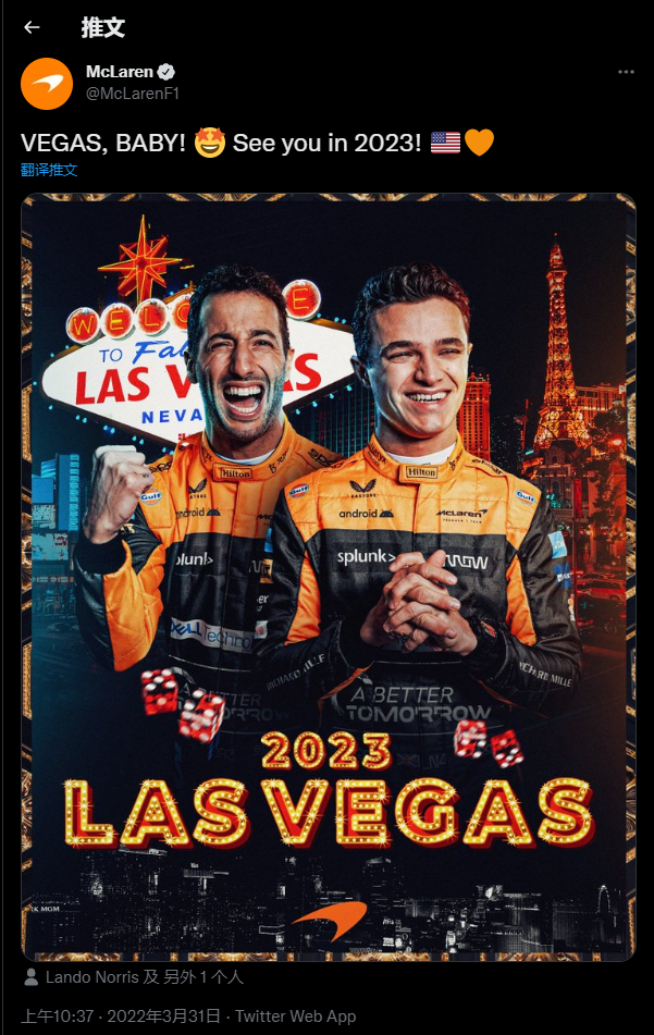 迈凯伦官方发推:拉斯维加斯,我们23年见!