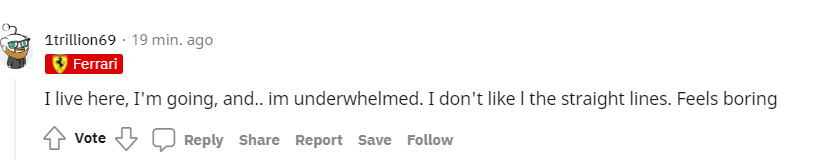 1trillion69:我住在这里,我不喜欢都是直道的比赛,感觉很无聊。