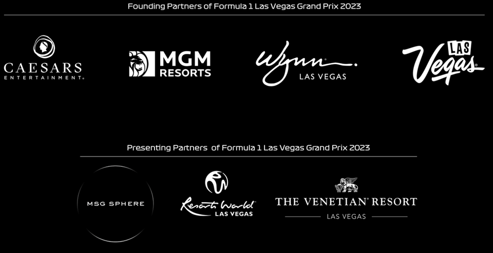 拉斯维加斯大奖赛公布了赛事赞助商。其中包括了凯撒娱乐集团和米高梅国际酒店集团。