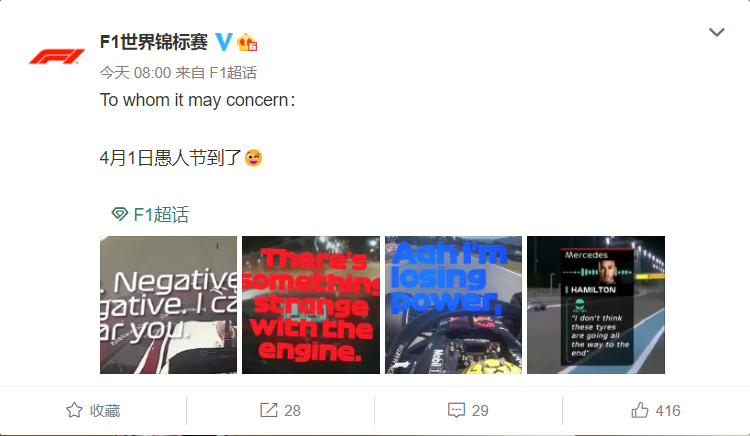 F1官微:愚人节到了
