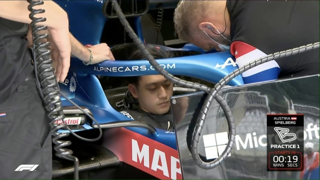 2020年末,周冠宇作为雷诺试车手,和偶像阿隆索一起进行了F1季后测试;2021年F1奥地利大奖赛中,他驾驶阿隆索的赛车参加了第一次练习赛,成为继马青骅之后,中国第二位参加F1练习赛的车手,在国内引起了轰动。一练结束,周冠宇的成绩同样亮眼,在20位车手中排名第14,只比队友奥康慢了0.4秒。