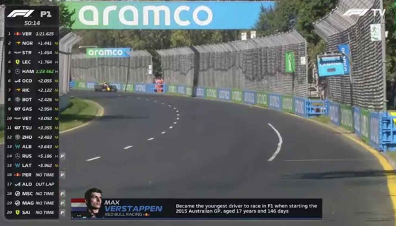 【F1澳大利亚一练】十分钟成绩,维斯塔潘暂列第1,周冠宇第12
