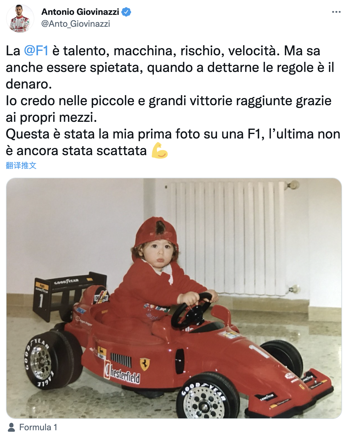 在阿尔法罗密欧车队相继宣布吉奥维纳兹离队和周冠宇加盟之后,吉奥维纳滋在个人社交媒体上表明了自己的看法,字里行间充满了对周冠宇的讽刺。