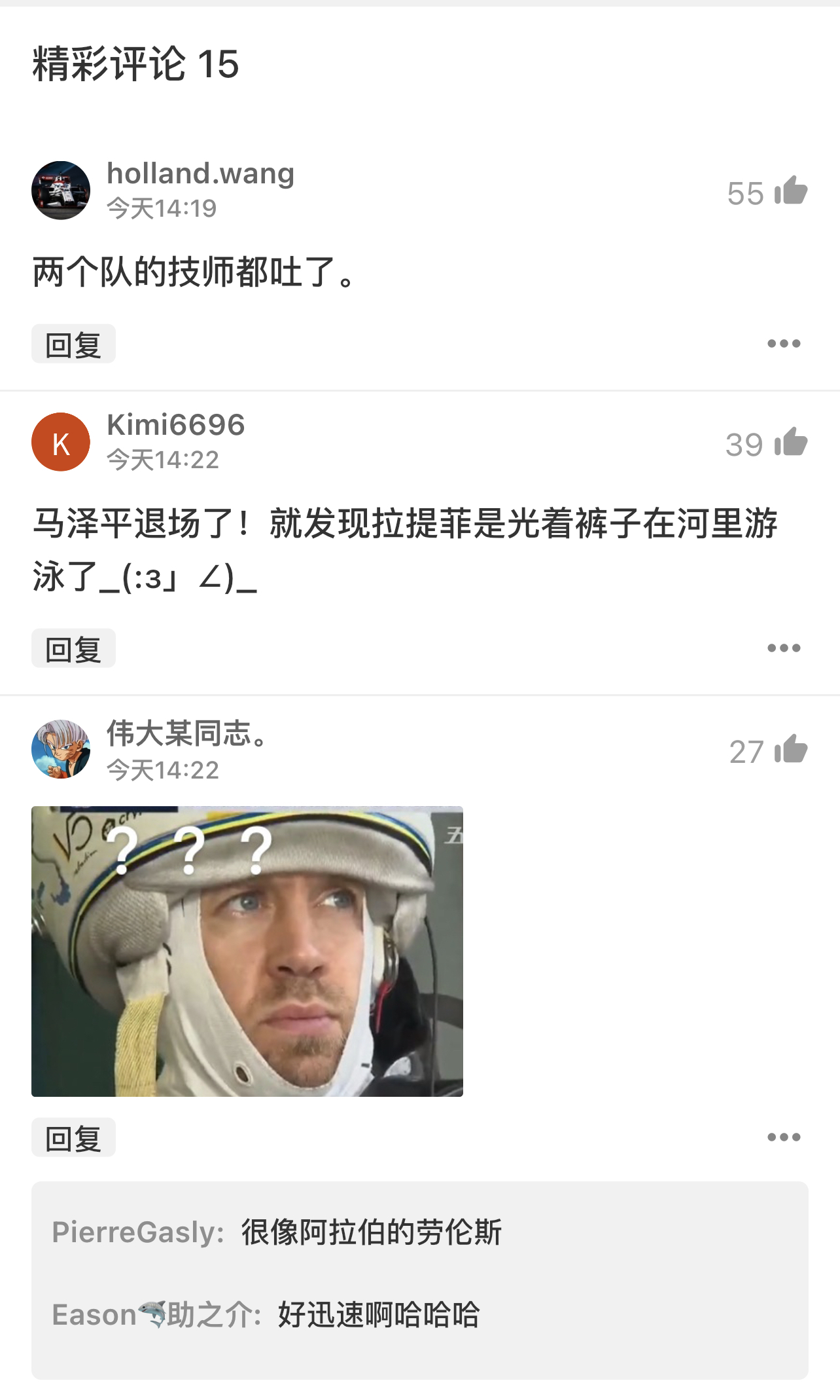 然而,在他第一个,也是唯一一个飞驰圈上,维特尔并没有取得太好的成绩,最终以18名完赛。不过考虑到上午的撞车,以及Q1最后时刻才匆忙上阵,无论是心理还是身体肯定都没有调整到最佳状态。希望他能在正赛上有所突破。