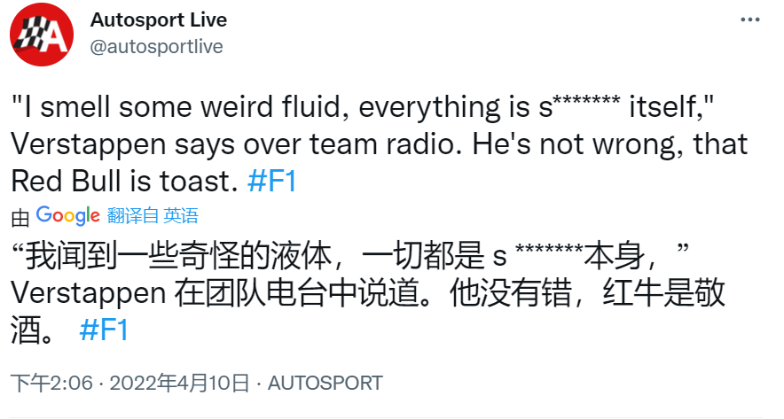 维斯塔潘在第39圈因赛车起火错失领奖台,赛后他通过TR向车队反映在行驶过程中他问到了奇怪的味道。