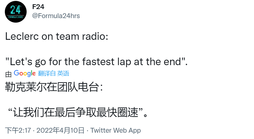 【澳大利亚正赛】勒克莱尔在TR中表示要冲最快圈