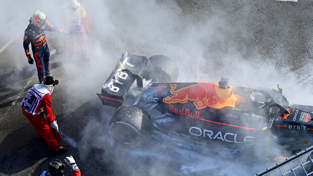 据AMuS报道,维斯塔潘在停车之前就已经问到了奇怪的味道,车队通过数据发现赛车的油耗突然增高,立即指示维斯塔潘把车停在赛道边。