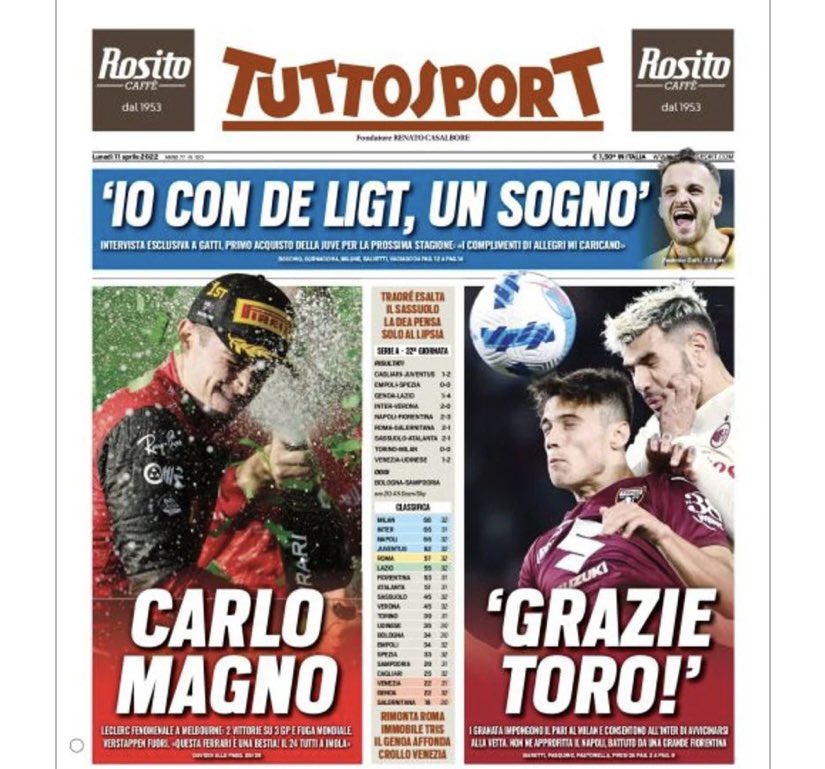 勒克莱尔夺冠登上意大利各媒体封面