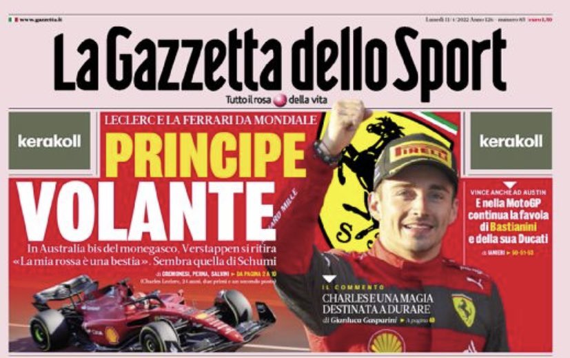 《米兰体育报》飞翔的王子 他看起来像舒马赫一样