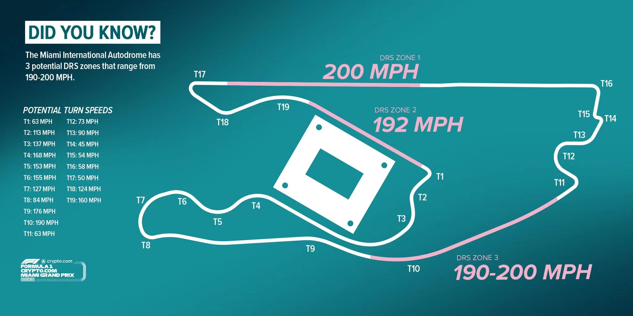 迈阿密官方发布赛道图:19个弯,3段DRS区