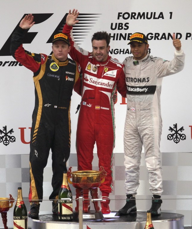 2013年4月14日,阿隆索在上海拿到了当赛季法拉利以及他个人的第一个分站冠军,第二名是雷诺车队的莱科宁,第三名是梅赛德斯车队的汉密尔顿。