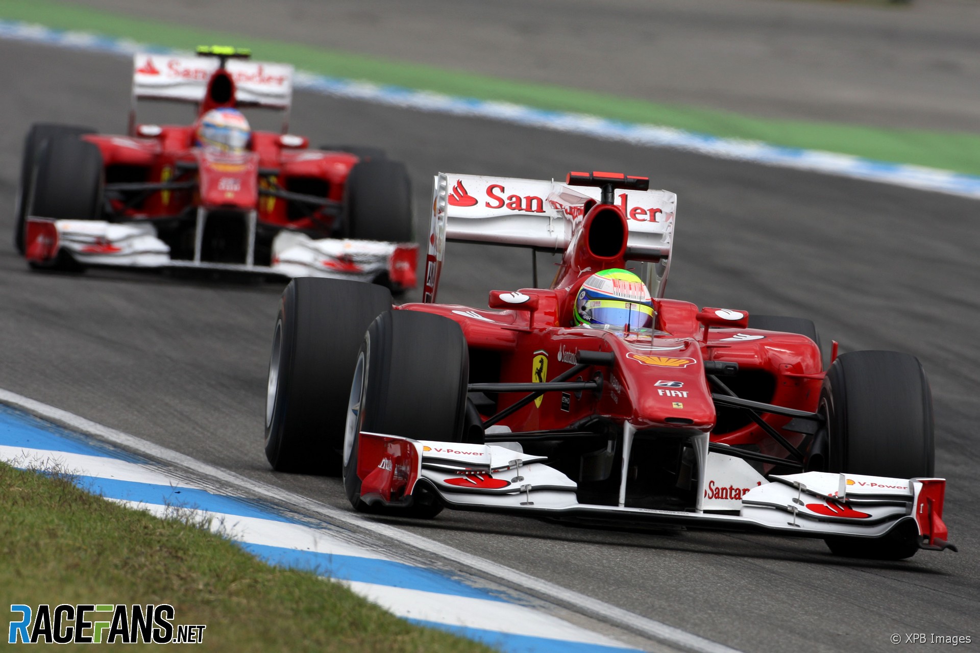 2010年德国大奖赛,领跑的马萨收到工程师斯梅德利的通知,要求他给身后的阿隆索让车。