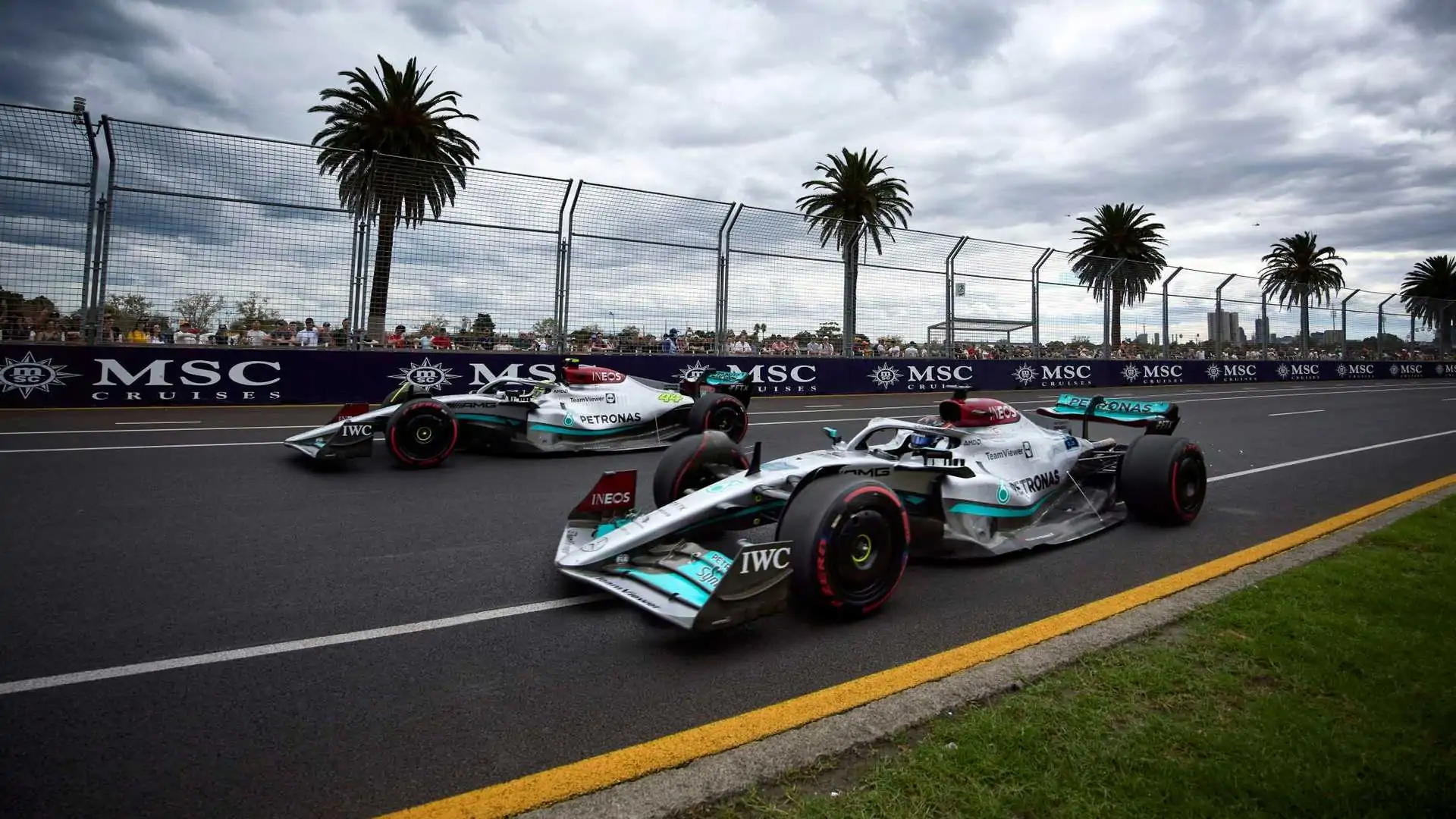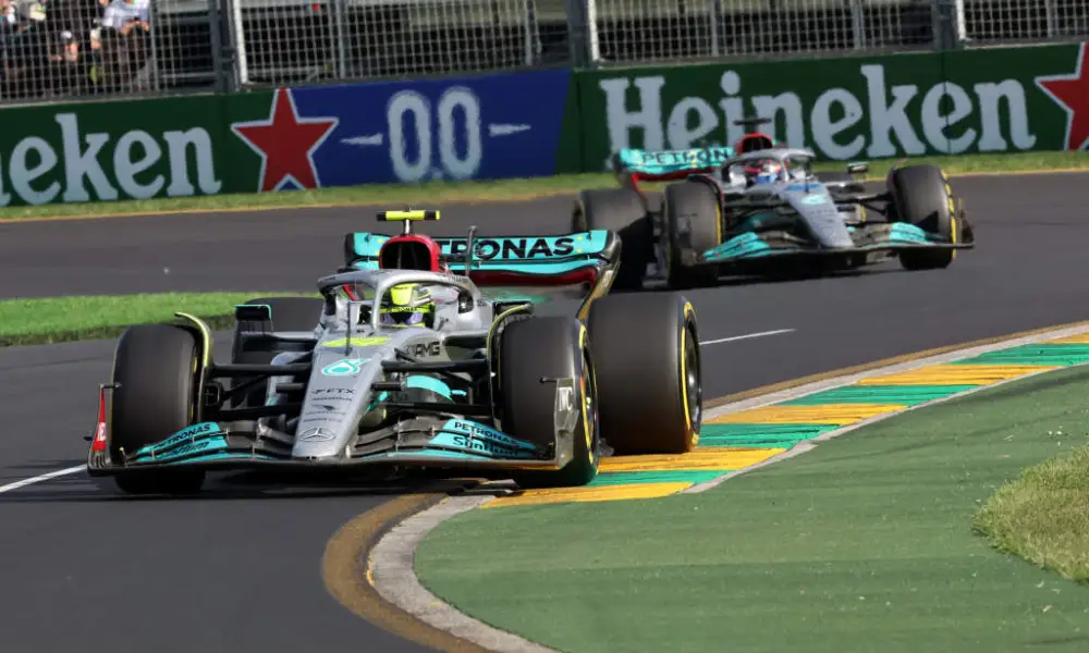 汉密尔顿落后九分,排在积分榜的第五位。他们两人都拿到了一个第三名,而这两次领奖台都是“归功于”红牛赛车的故障退赛。对于拉塞尔而言,他在墨尔本也是非常幸运的,在正确的时间和合适的位置遇到了安全车,否则从统计数据上看汉密尔顿就2-0拉塞尔了,但是他们通常在比赛中都处于十分接近的位置,并且到目前为止从他们的表现来看都是势均力敌的。