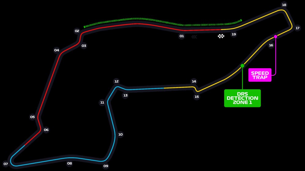 让我们再看看伊莫拉赛道,S1有一段很长的直道适合全油门冲刺,大直道被两个发卡弯打断,根据我们目前所看到的,这一段可能是红牛的优势所在,在这一圈剩下的时间里,频繁的加速和动力输出部分看起来就像是为法拉利量身打造的。